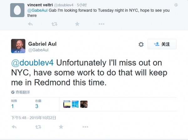 此外Aul在推文中表示:“对于不能参加纽约的发布会我感到太遗憾了,现在我在Redmond总部还有一些工作没有完成”,而这里的工作可能是Windows 10 Mobile下个版本。