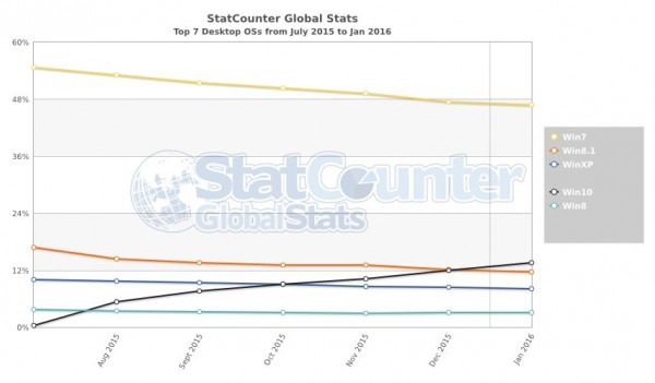受免费升级策略和其他辅助手段影响,微软表示Windows 10系统在全球范围内的装机量已经突破2亿台。而根据StatCounter提供的最新数据也表明Windows 10系统已经成为全球第二大桌面操作系统,在桌面操作系统的占比达到了13.52%,仅次于Windows 7系统(46.8%),而Windows 8.1系统在过去每个月都出现不同程序的下滑,目前以11.66%的占比位居第三。