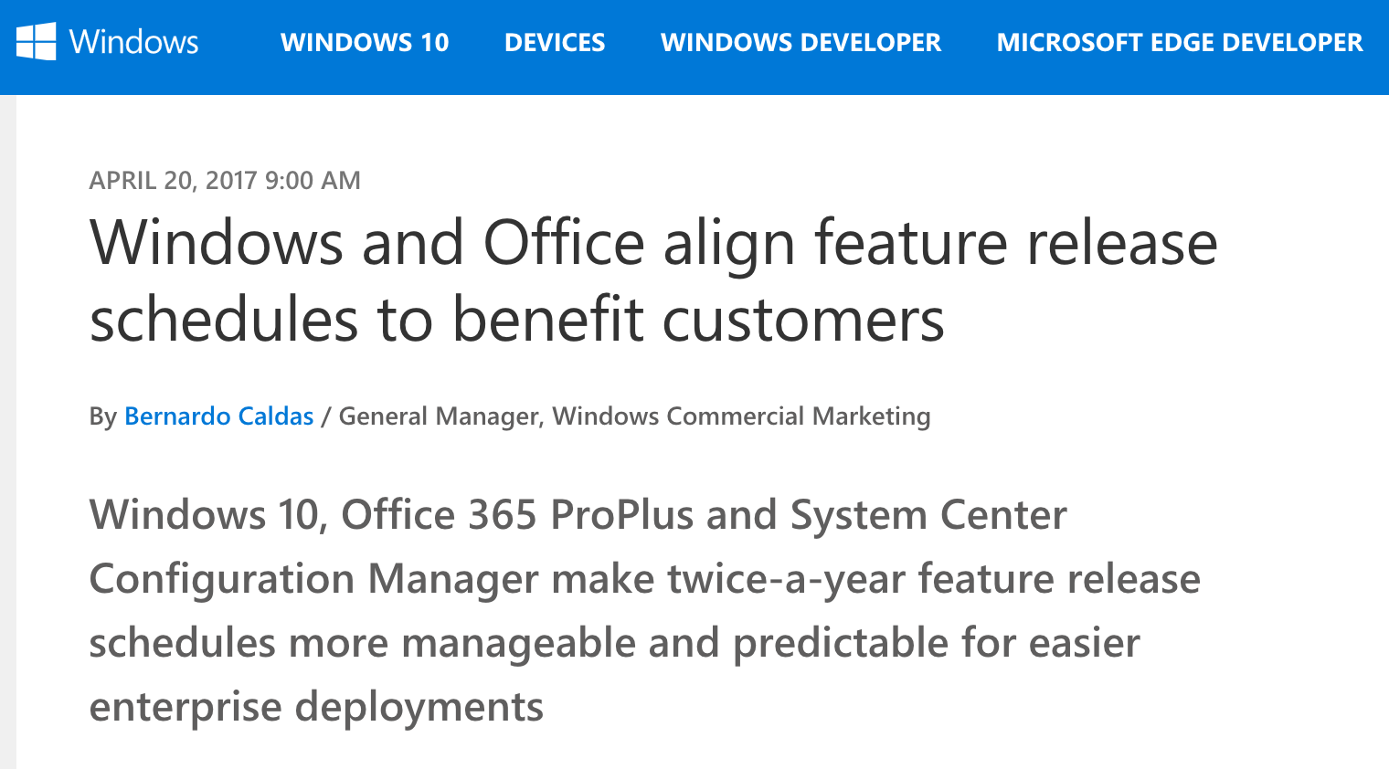 另外,System Center Configuration Manager 将支持 Office 365 ProPlus 和 Windows 10 新的对齐更新模式,从而更容易部署和更新。