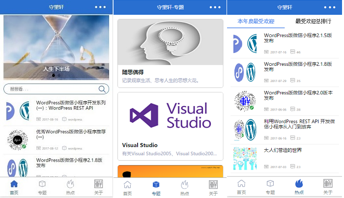 现在wordpress也能做小程序了!也许已经有人体验过了,其实效果还是相当不错的,主要适当的定制开发,也能做非常漂亮的小程序。