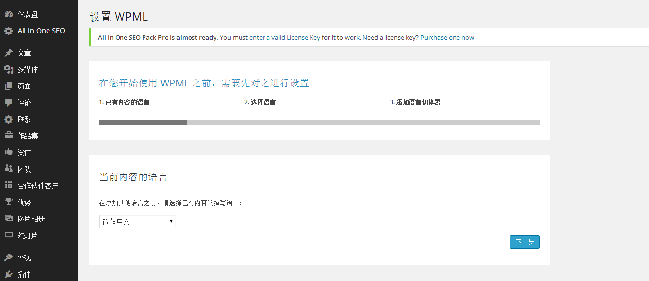 下面介绍WPML多语言插件一般用户最基本的使用方法: