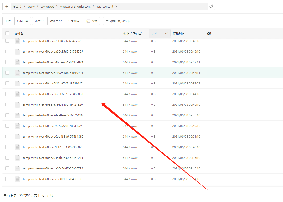 wordpress 生成temp-write-test-60bece3b05dd70-52775212 很多很多的这种0大小的文件,很烦人,如下图