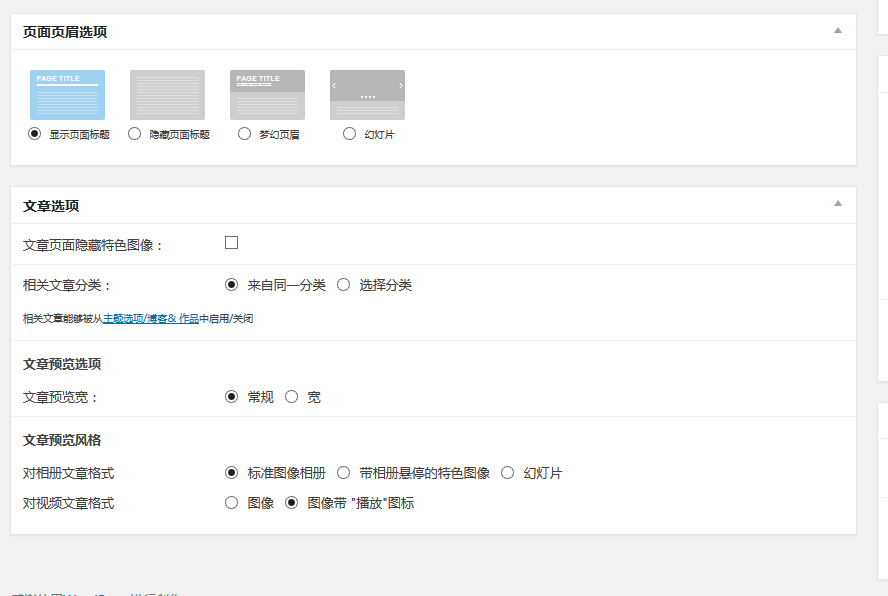 文章页面隐藏特色图像:这个一般要勾选,你设置的特色图像会显示在文章内容之中,这个尼玛太丑了……
