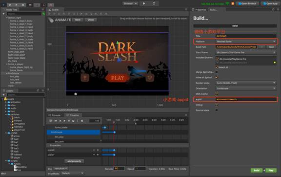 • Cocos Creator 编辑器提供了快捷的打包流程,直接发布为微信小游戏,并自动唤起小游戏的开发者工具