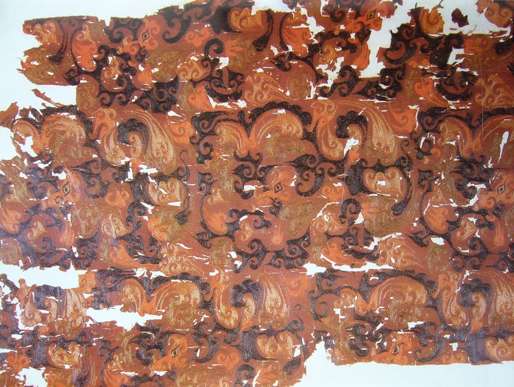 湖南民间刺绣历史久远,1958年湖南长沙烈士公园楚墓出土的战国时期“龙凤蔓草纹刺绣”残片其生动活泼的构图,刺绣技法的精美,已凸显出战国时期湖南刺绣的高水平,又1972年长沙马王堆西汉古墓出土的一批汉代刺绣,色彩绚烂,图案丰富,绣工精致,针法细腻(图1-4-5-10 汉绣长寿纹 湖南省博物馆藏)。如此丰盈的楚绣文明体现了湖南民间刺绣的源远流长。