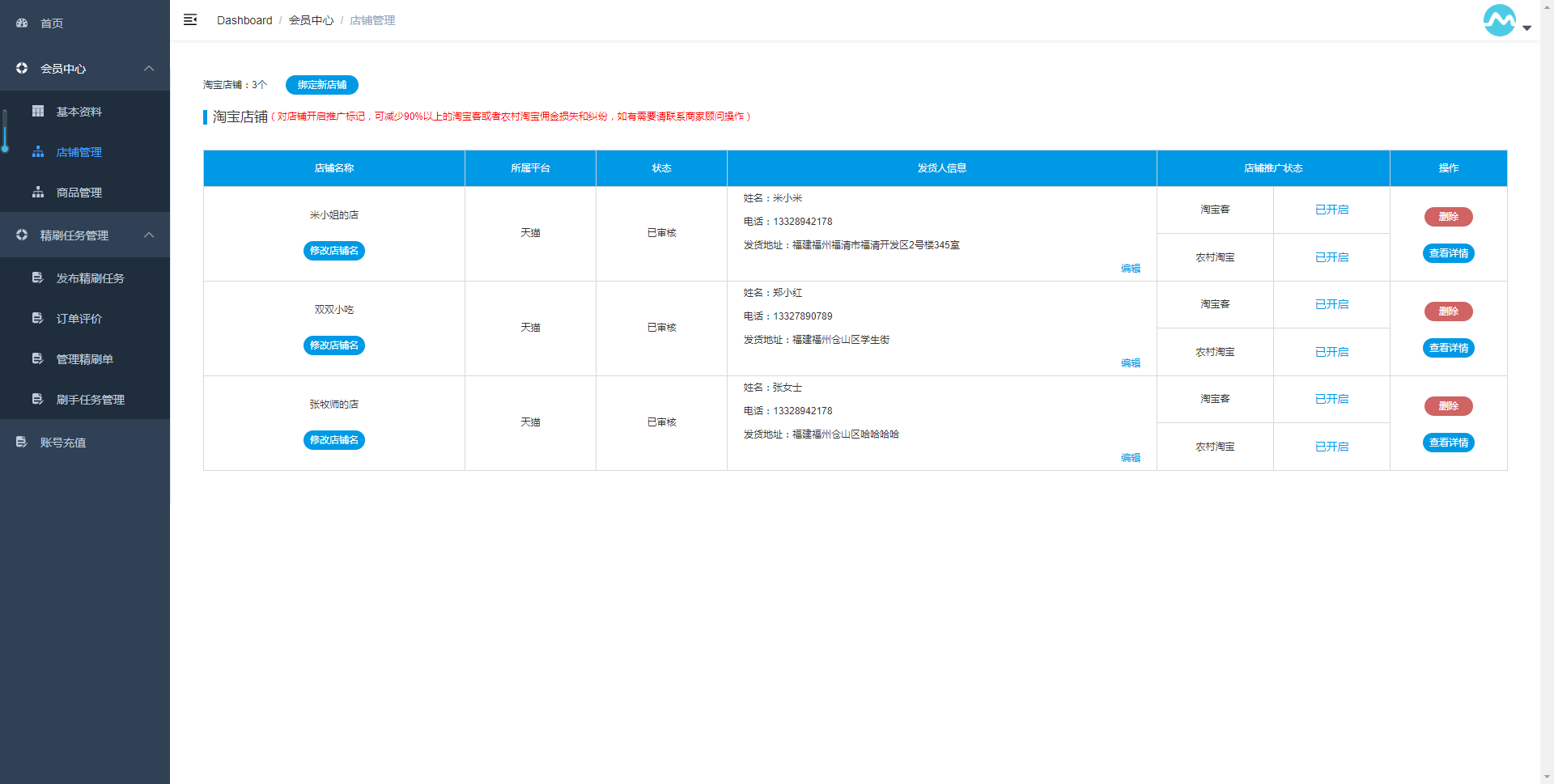 新零售刷单系统,是由我技术团队独立完成编写的一套刷单管理系统。本系统采用强大的PHP框架THINKPHP+MYSQL数据库。系统安全稳定,是帮助广大淘宝商家提高网站成交量,知名度的一套完美系统。