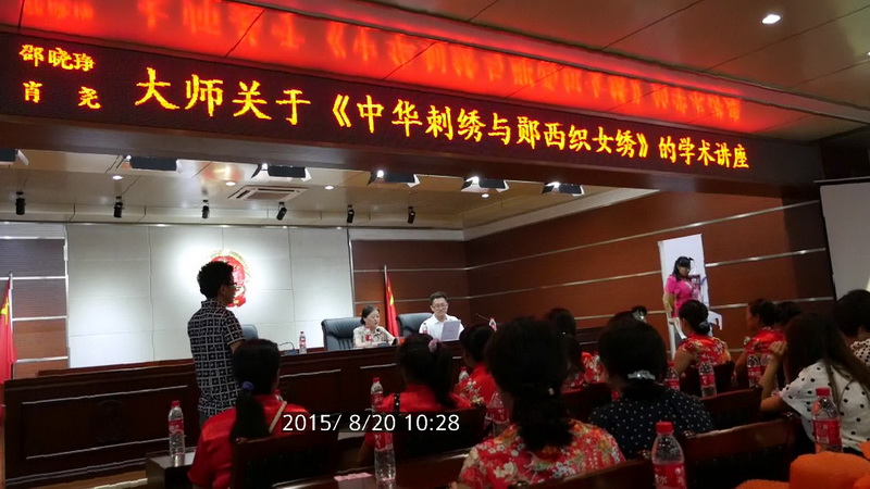 缘于此,与刺绣文化关联紧密的七夕节便同她具有天然的亲和。2011年的七夕,她受邀来到河北邢台,为恢复当地的襄绣研讨论证,也为当地传统手工艺的发展出谋划策;2014年的七夕,她受邀来到郧西这个全国贫困县,深入民间考察了当地刺绣产业的发展现状;2015年的七夕,她因为一个承诺,即便自己有着严重的晕车症、在秦岭高速上堵车近6个小时,依然坚持重回郧西,帮助当地恢复了地方绣种“织女绣”,并马不停蹄地为地方刺绣从业人员开设了刺绣艺术和技术的启蒙讲座,从专业角度为“织女绣”指出了今后的发展方向。