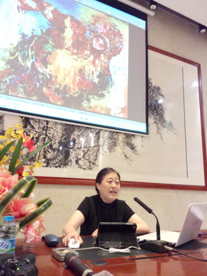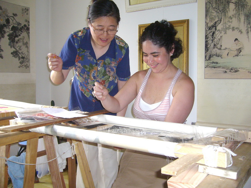 2008年奥运期间,她被邀请赴美国旧金山亚洲艺术馆讲学。期间,博物馆工作人员请她去库房观看点评馆藏刺绣品,并希望她对其进行修复复制等研究工作,被她当即拒绝,她说当时那“狭隘”的民族情绪充斥着她的脑海,她确然喜爱这些古董绣作,但更希望凭借自己的努力,让它们真正活化,并回归祖国,回到家乡,让更多的中国人为之自豪和骄傲!她本人不但积极研究创作,在刺绣类文物修复复制这个全球文博界的难点上,也已基本攻克了其最大的难题——各刺绣流派不同艺术特征对应代表性针法技巧的梳理、辨识和丰富的实践经验。她曾经接受了来自美国一位成熟藏家收藏的日本江户时期堆绣屏风的修复工作,并广泛被中国主流文化媒体采访播报。修复这件堆绣屏风对她来说只是一个阶段性的里程碑,她期待着有国家的支持,将刺绣类文物的修复复制项目推动起来,最终实现全球范围内中国优秀刺绣类文物的统筹研究和回流,并以此为契机建立一个具有研究、展示、宣教等功能的博物馆。其志不可谓不高远!