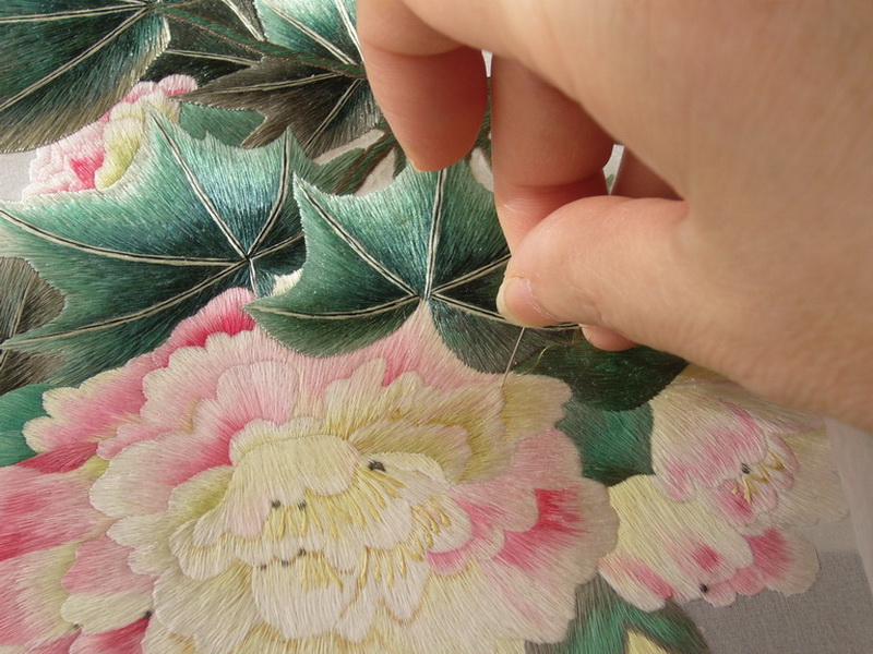 邵晓琤绣制蜀绣《芙蓉鲤鱼》