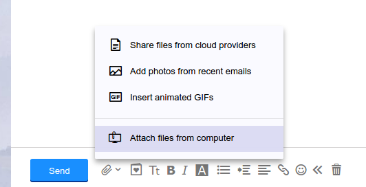 雅虎邮箱提供了一项功能,可以从云服务中分享文件。在邮件中进行分享之后,文件不会附在邮件的附件中,而是会使用HTML代码插入一个链接,比如Google文档/Dropbox的链接。