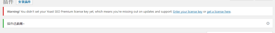 Yoast SEO Premium的输入key的提示信息。