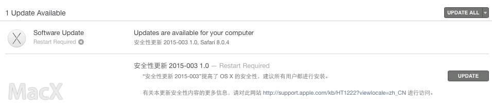 苹果刚刚为 OS X Yosemite 系统发布了安全升级补丁,并未2015款 Mac 电脑发布了单独的安全升级补丁,也就是13寸支持 Force Touch 的 Retina MacBook Pro 和即将发布的全新 MacBook。运行10.10.2 系统的用户可以通过 Mac App Store 完成更新。已经安装 OS X 10.10.3 公测版的用户不需要升级,因为新系统似乎已经修复了安全补丁中解决的问题。 2015年3月20日软件更新资讯 Rocket 0.4.2 发布 首次支持交互式容器Amazon RDS 支持 PostgreSQL 9.4.1 主流版本 相关文章Ai大模型相关案例,AI2025年6月11日Firefox 135.0 发布2025年2月6日2025年无人自助棋牌室还能不能做?2025年还能不能做共享茶室2025年2月6日智能化下的产物,无人棋牌室2023年9月1日linux centos8升级openssl 3.0.8版本全过程2023年3月13日共享茶室加盟好还是自营好?2023年3月11日