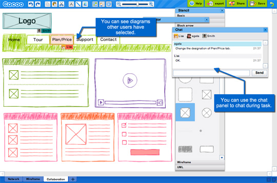 这是一个很酷的在线绘图工具,可让你绘制不同类型的图表,如网站地图,线框,UML图和网络图。
