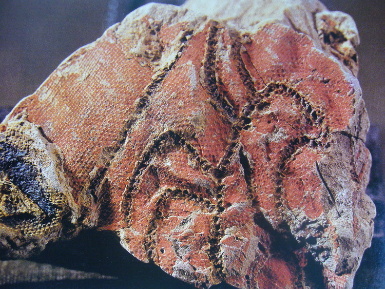 从已知的考古发掘来看,当时的染色技术还不成熟,绣线并不一定先上色后施绣,而是先绣纹样再敷彩。来看两件1974年山西宝鸡鱼伯墓淤泥上残留的辫子绣印痕(西周),长15CM,宽9CM(图1-3-1),又长5CM,宽3.5CM(图1-3-2),这种刺绣是先用黄色丝线在染色的丝绸上绣了出纹样轮廓,再在绣纹处涂染大块颜色,有红(天然朱砂)、黄(石黄)等,与传统国画色相类,反映了古人所谓的“画馈之事”(《考工记·画缋》记载“画缋之事……五彩备谓之绣”),这种以画补缋的做法是刺绣发展初期的特点。