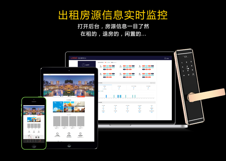 比如常见的门锁,目前市面上的多数房租、公寓、酒店等设施还是采用传统的机械锁,磁卡锁。新一代的智能锁逐渐走入到人们的生活当中,它可以通过指纹,密码,磁卡,手机app,微信等多种方式进行开锁,是目前非常流行的家用或者商用锁,智慧出租管理平台可以与该锁进行结合,把锁放到云端通过软件来进行操控。平台可以通过智能锁来进行管理房间,常见的情况是租客在看房的时候,房东如果外出,可以选择通过智慧出租管理软件,给于看房的客人一个临时的密码,通过该密码可以打开房门,但是只在一定的时间内有效。房东还可以通过平台进行催收房费,如果租客没有在规定的时间内上缴房租,那么房东可以给该房间进行上锁,直到用户缴纳费用后,再给于开锁。随着技术的成熟,常见的智能水电表也加入到了平台中来,房东不需要记录每个房间的电表和水表,智能水电表与平台连接后,通过自动读取每家用户的水电用量数据传给平台,房东通过平台可以一目了然的知道每家每户用量情况。该平台另一个特点是可扩展性强,在后续的产品升级中,我们还可以加入些其他的智能设备来全方位的提升整体的可用性和便捷性。