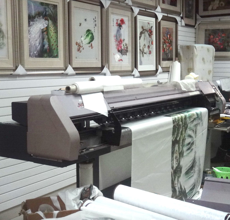 图3-1、喷绘打印机正在刺绣面料上打印绣稿