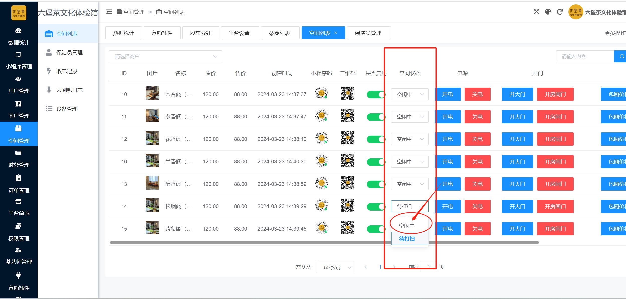 不通过保洁端,如何更改包间的显示状态?,打开运营系统后台: 2024年5月19日芊雅共享空间系统 淘江湖分享到淘江湖开心网分享到开心网豆瓣分享到豆瓣人人网分享到人人网腾讯微博分享到腾讯微博新浪微博分享到新浪微博QQ空间分享到QQ空间微信分享到微信 充值功能如何设置?共享茶室、共享棋牌室业态中保洁如何配置和使用? 相关文章芊雅共享空间系统中如何设置包间套餐价格?2025年4月16日无人自助茶室,棋牌室如何设置抖店(抖音来客)核销?2025年1月25日系统如何添加在线客服?2024年6月10日抖音团购核销配置教程2024年5月29日充值功能如何设置?2024年5月19日共享茶室、共享棋牌室业态中保洁如何配置和使用?2024年5月19日