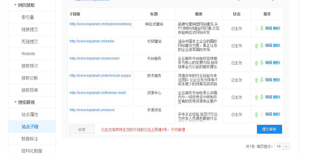 请的站点子链通过了审核,并且已经显示了。